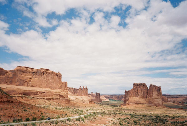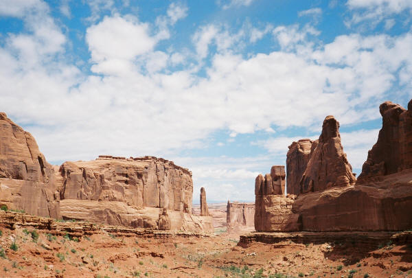 August 20, 2005 Today is the last weekend before a flood of new students arrive to my classroom and another year of teaching begins. I rejoice in this vocation with which God has blessed me and I rejoice in the 3 months a year of free time it provides. During my 12 years of overseas teaching there was scarcely any time away from work that I did not head into the wilds of Latin America. Doing so has so become a part of what makes me me that I am now experiencing what most accurately is described as withdrawal. My last journey to the wild and weird climes of lands south of the Rio Grande ended in April of 2004. If I am unable to spend a few weeks in the jungles of northern Guatemala this Christmas the soonest I can get back to Latin America with tent and backpack will be next summer---a full school year away, alas. Not much I can do about this just yet except lament. Starting next week there will be no time for any such lamentation. Students and school will occupy my thoughts marvelously. I had planned to spend this summer backpacking and 4-wheeling my way to Oregon, but pneumonia intervened. Five weeks in bed as weak as a kitten does little for the physique but much for the waistline. I am simply unused to such inactivity. Mind, body and soul have rebelled. If I do not get somewhere alone in God's creation and do some strenuous backpacking I might go mad. Or nuts. Or become weirder than I normally am. But anyway... I did manage to pass through some stunning scenery while driving to Oregon in my Jeep. I know next to nothing about the wilds of my own nation but it is Utah that has taken my breath away. I spent time in Moab and in Arches National Park and passed through Monument Valley along the border with Arizona. Truly, this part of the US deserves its reputation for 4-wheeling, mountain biking and backpacking. In between bouts of coughing up my lungs I managed some photos of these places. For example: