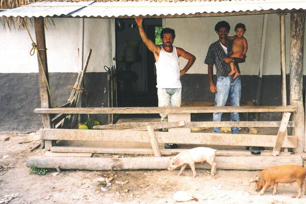 My first night there the Jones family invited me into the hut for a dinner of rice, beans and iguana. The unlucky reptile was pulled alive from a cotton sack and slaughtered then and there. It screamed and writhed while the knife sliced it open but at last gave up the ghost. I had never eaten iguana and hoped never to eat it again. Its flesh was oily and repellent, and nothing like chicken. (Click on the image.)