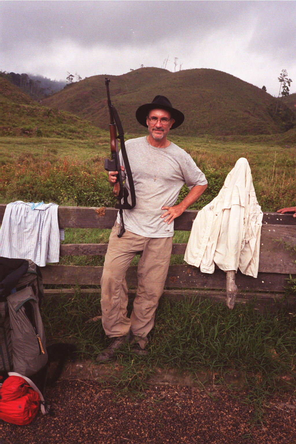 While backpacking in rural Honduras I came upon a farmer who had loads of weaponry at hand,