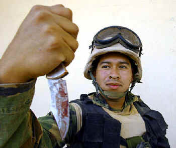 Salvadoran Cpl. Samuel Toloza said a prayer, whipped out his knife and charged the Iraqi gunmen. In one of the only known instances of hand-to-hand combat in the Iraq conflict, Cpl. Toloza stabbed several attackers swarming around a comrade. The stunned assailants backed away momentarily, just as a relief column came to the unit's rescue. "We never considered surrender. I was trained to fight until the end," said the 25-year-old corporal, one of 380 soldiers from El Salvador whose heroism is being cited just as other members of the multinational force in Iraq are facing criticism.
