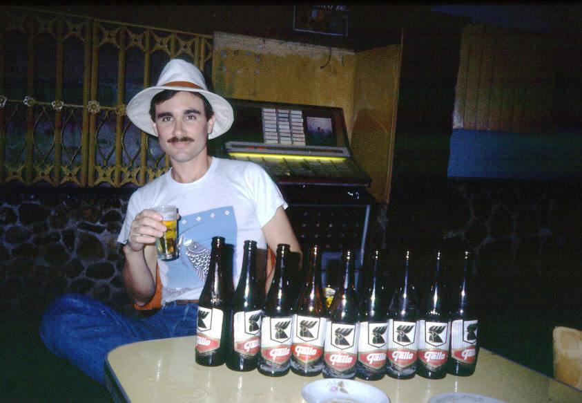 I am going through all of my photos taken over the last 21 years or so. A couple of them need to be seen here and now. In 1983 I was trying to enter northern Guatemala in a rather interesting way. A border guard accosted me and began a series of intrusive questions. As I could come up with no good answers, he pointed his rifle at me and demanded that I go with him to the local police station. I had no desire to spend time in any sort of jail, and so propositioned him with this idea: instead of him taking me to jail, how about if I bought both of us dinner and all the beers we could drink? It took only a moment for the guard to come to his decision. He slung the rifle over his shoulder and we sauntered over to the nearest cantina. The result is below.