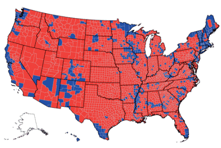 The Democrat Party will continue on its path to self-destruction. Done deal. Right now Democrats are trying to figure out why they lost. The leadership is yet clueless. It believes the American voters---at least those who voted for Bush---to be idiots. Democrats think that part of the problem is that they could not get their message out. Well, no, their message got out just fine, and the voters rejected it. To understand the magnitude of the decline of the Democrat Party you must see the county-by-county voting patterns for 2004. Red counties went for Bush, blue counties for Kerry.