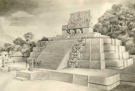 Gibson actually built an entire Mayan city for his film, including a series of temples where occurred those sacrifices. Such structures can still be seen in Mayan ruins today. Here are some reconstructions from the Russian Mayanist Tatiana Proskouriakoff (1909-1985).